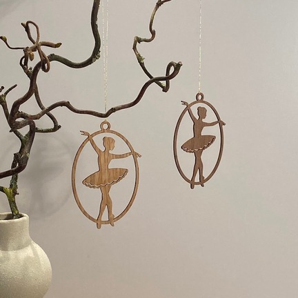 Ballerina er et yndefuldt ornament inspireret af ballettens lethed og bevægelse.Den fine silhuet indrammet af en oval form skaber et roligt og elegant udtryk, hvor balance og poesi går hånd i hånd.