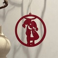 Et stemningsfuldt ornament, der indfanger julens varme, nærhed og små øjeblikke af kærlighed.Den enkle silhuet af to nisser i et stille kys, indrammet af en rund form, giver motivet et roligt og nostalgisk udtryk.