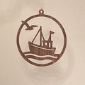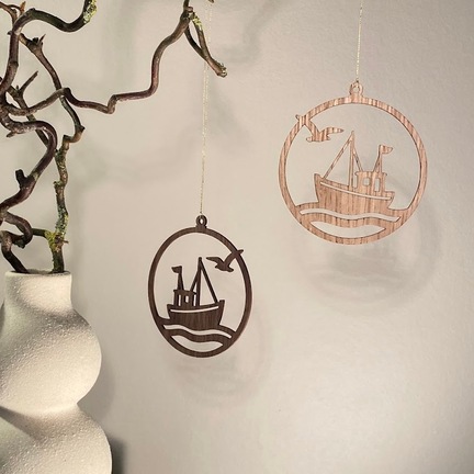 er inspireret af det arbejdende liv langs den danske kyst – de små kuttere, der dag efter dag har sat kurs mod horisonten og vendt hjem igen med havet som følgesvend.Motivet viser fiskekutteren i bevægelse på bølgerne, ledsaget af måger over vandet. Et enkelt og grafisk udtryk, der fortæller om nærhed til naturen, slid, rytme og livet ved havet. Ornamentet fungerer både som julepynt og som en stemningsfuld dekoration året rundt – især for dem med tilknytning til kysten.